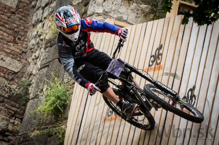 Horský cyklista Martin Knapec počas tréningovej jazdy v rámci 3. kola Svetového pohára v mestskom zjazde Bratislava City Downhill 2014. Bratislava, 21. jún 2014. Foto: SITA/Jozef Jakubčo