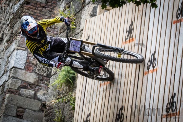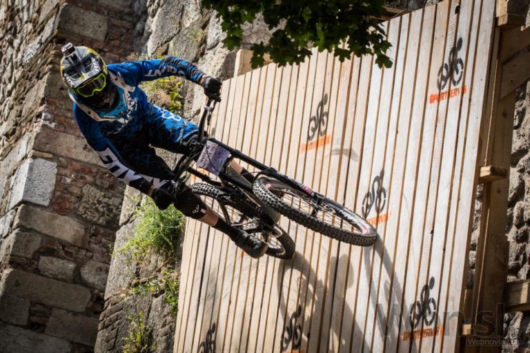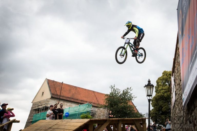 Horský cyklista Filip Polc počas kvalifikačnej jazdy počas 3. kola Svetového pohára v mestskom zjazde Bratislava City Downhill 2014. Bratislava, 21. jún 2014. Foto: SITA/Jozef Jakubčo