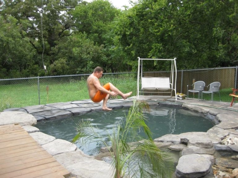 Takto pomaličky vykúzlil na záhrade krásne jazierko a bazén v jednom. Foto: imgur.com
