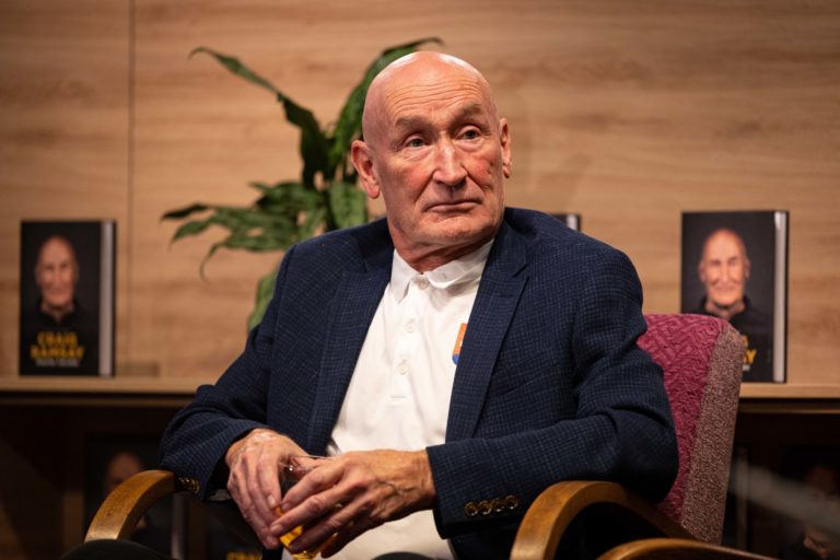 Tréner slovenskej hokejovej reprezentácie Craig Ramsay počas krstu knihy Craig Ramsay Šťastný chlapec, ktorá dokumentuje päťročnú misiu trénera slovenskej hokejovej reprezentácie Craiga Ramsayho. Bratislava, 28. november 2022. Foto: SITA/Jana Birošová.