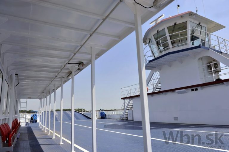 Jedna z prvých plavieb po krste novej dunajskej kompy na prívodnom dunajskom kanáli medzi obcami Kyselica a Vojka nad Dunajom. Vojka nad Dunajom, 1. júl 2015. Foto: SITA/Ján Slovák