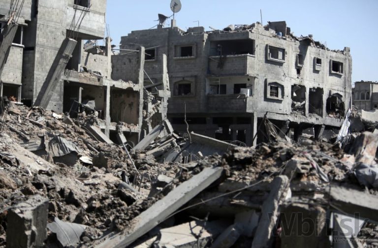 Ľudia sa prehrabávajú v troskách budov v Pásme Gazy, ktoré boli zničené Izraelom. Foto: SITA/AP