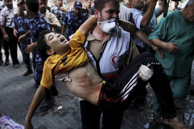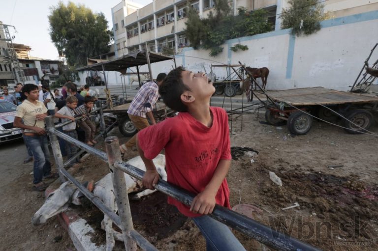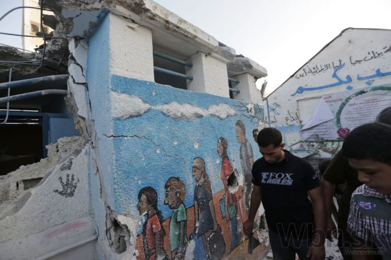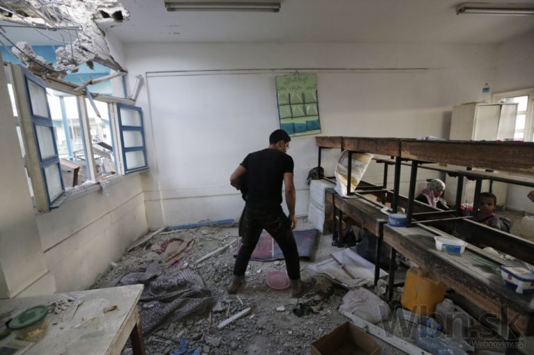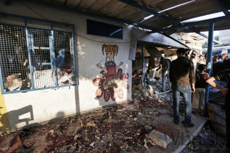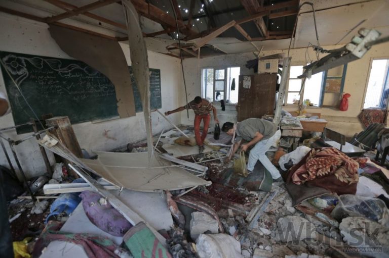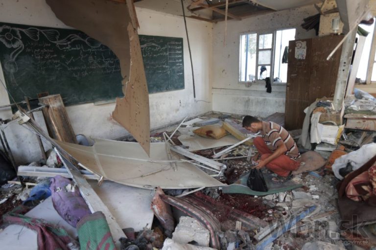 Izraelské rakety v stredu dopadli na domy a školu v severnej Gaze a zabili pritom najmenej 43 ľudí vrátane 20 v miestnej škole prevádzkovanej Organizáciou Spojených národov (OSN), kam sa Palestínčania prišli ukryť pred útokmi. Foto: SITA/ AP