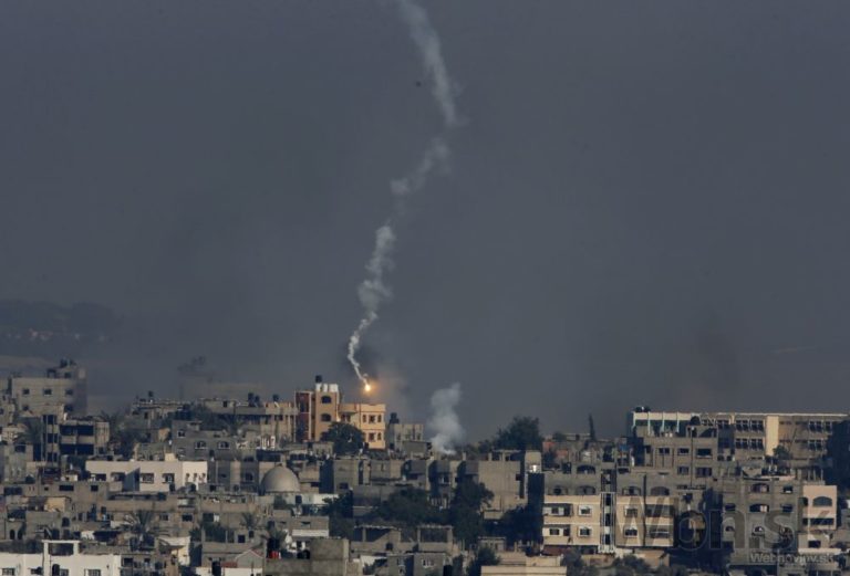 Izraelské sily vypálili proti svojim cieľom stovky striel, ktoré zmenili oblohu na oranžovú. Foto: SITA/AP