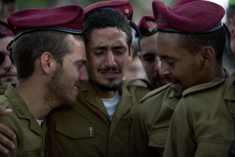 Izraelskí vojaci smútia počas pohrebu zabitých vojakov. Foto: SITA/AP