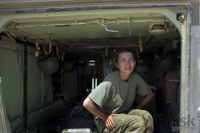 Izraelská vojačka sedí v armádnej dodávke blízko hranice Pásma Gazy. Foto: SITA/AP