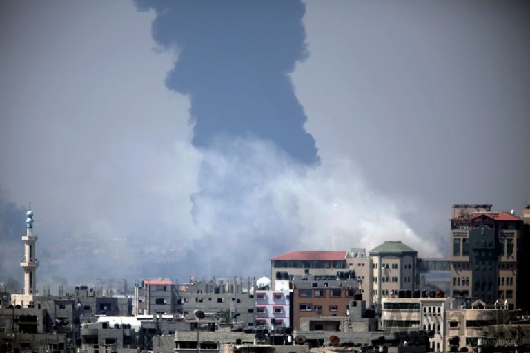 Izraelská armáda v nedeľu opäť obnovila útoky v Pásme Gazy krátko po tom, ako vypršalo niekoľkohodinové humanitárne prímerie. Foto: SiTA/AP