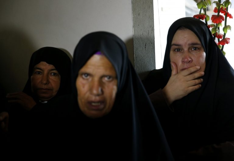 Ženy zronené smrťou dvadsaťsedemročného Palestínčana Saddama Abu Muamera, ktorý zahynul počas nočného raketového útoku Izraelu. Foto: SITA/AP