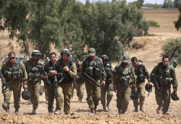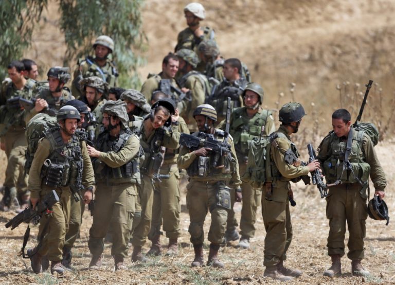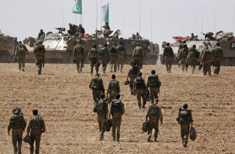Mladí izraelskí vojaci sa presúvajú na novú pozíciu na hraniciach Pásma Gazy. Izrael, 12. júla 2014. Foto: SITA/AP