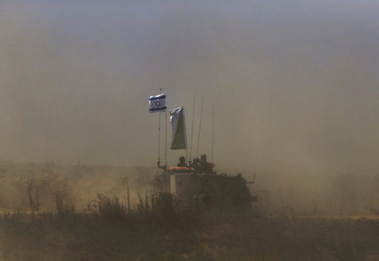 Izraelskí vojaci sú na ceste zaujať nové pozície na hraniciach Izraela a Pásma Gazy. Izrael, 12. júla 2014. Foto: SITA/AP