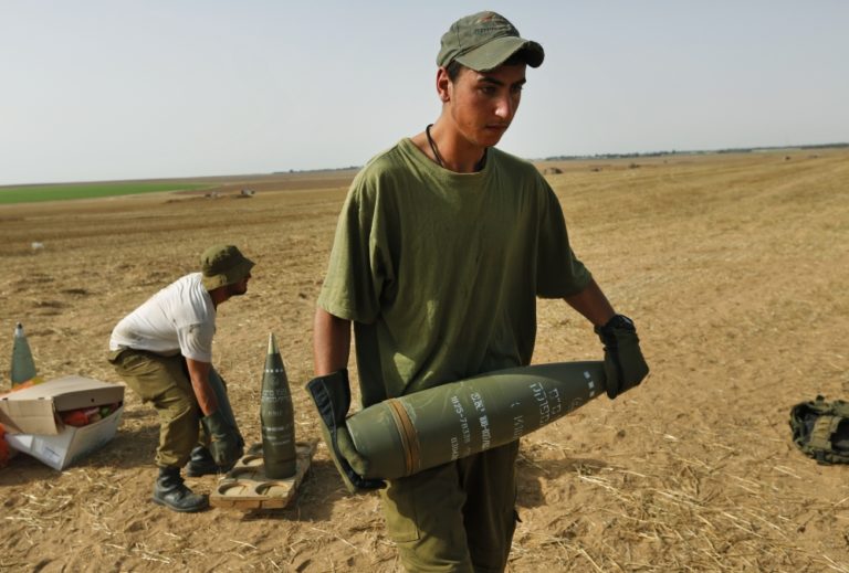 Izraelský vojak nesie muníciu do tanku na stanovisku pozdĺž hraníc Izraela a Pásma Gazy. Izrael, 12. júla 2014. Foto: SITA/AP