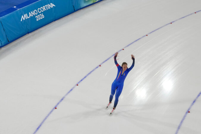 Talianska rýchlokorčuliarka Francesca Lollobrigidová na ZOH 2026 vybojovala prvú zlatú medailu pre Taliansko, v sobotu triumfovala na trati 3 000 metrov v novom olympijskom rekorde 3:54,28 min. Foto: SITA/AP.