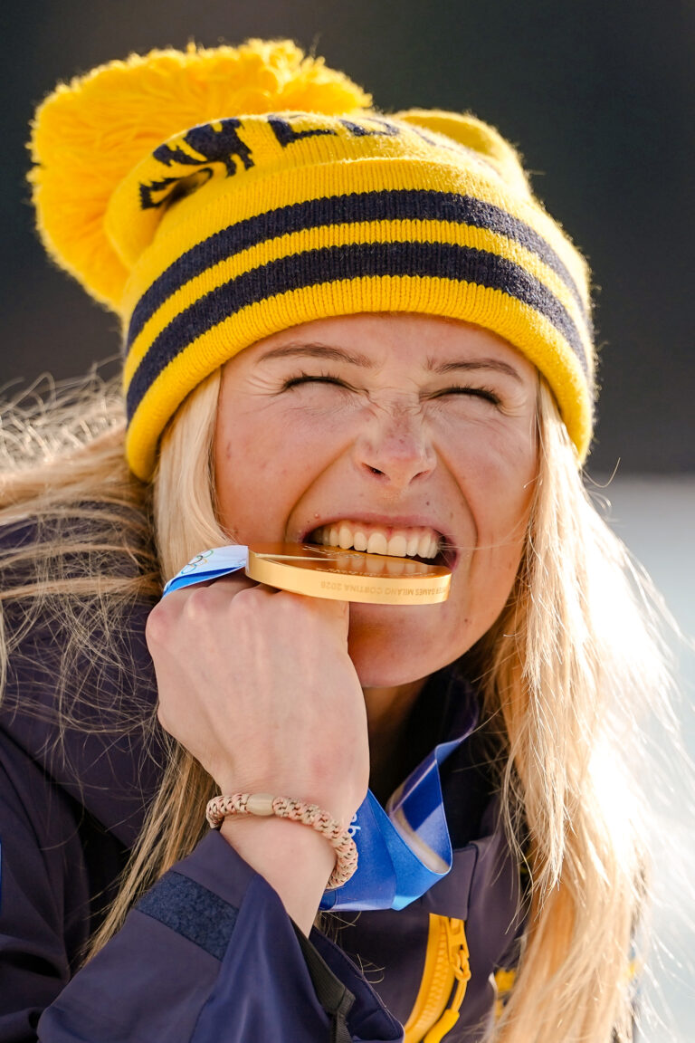 Zlatú medailu v ženskom skiatlone na 20 kilometrov získala švédska bežkyňa na lyžiach Frida Karlssonová. Tesero, 7. február 2026. Foto: SITA/AP.
