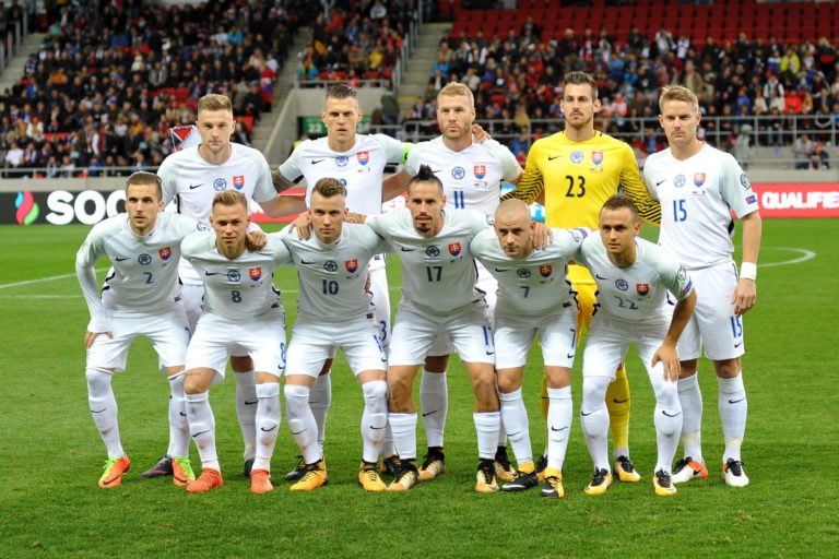 Reprezentanti Slovenska počas futbalového zápasu Slovensko - Malta v rámci F-skupiny európskej časti kvalifikácie o postup na MS 2018 do Ruska. Trnava, 8. október 2017. Foto: SITA/Ivan Kopčáni.