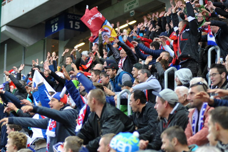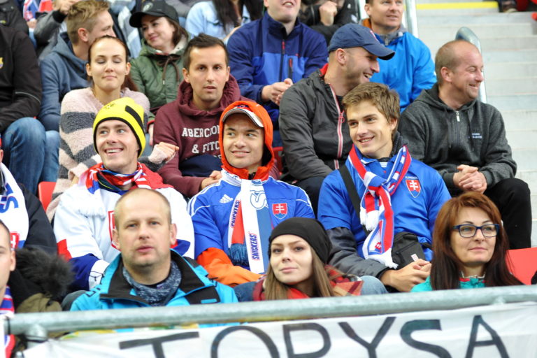 Fanúšikovia Slovenska počas futbalového zápasu Slovensko - Malta v rámci F-skupiny európskej časti kvalifikácie o postup na MS 2018 do Ruska. Trnava, 8. október 2017. Foto: SITA/Ivan Kopčáni.