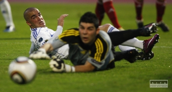 Brankár Josep Gomes (druhý zľava) z Andorry v zápase B-skupiny kvalifikácie na majstrovstvá Európy 2012 medzi Slovenskom a Andorrou. Bratislava, 4. jún 2011. Foto: SITA/Marián Peiger