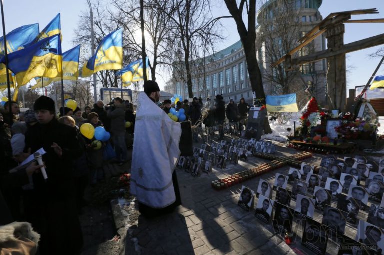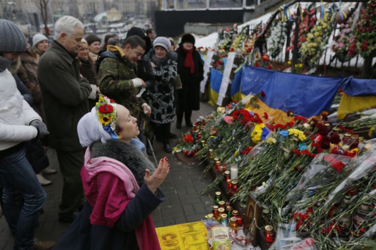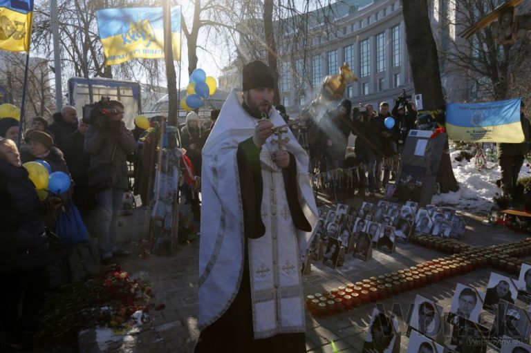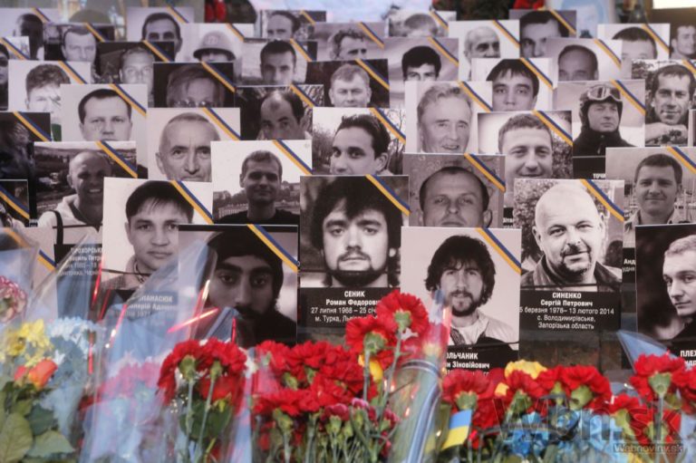 V Kyjeve si ľudia pripomínajú prvé výročie krvavých udalostí počas protestov proti vláde prezidenta Viktora Janukovyča, pri ktorých prišlo o život najmenej 105 ľudí. Na počesť obetí vyhlásili 20. február za štátny sviatok. Protesty vyústili do zosadenia Janukovyča a k jeho úteku do Ruska, Ukrajina, 20. Feb., 2015