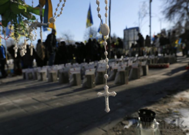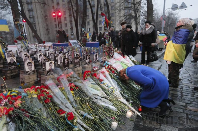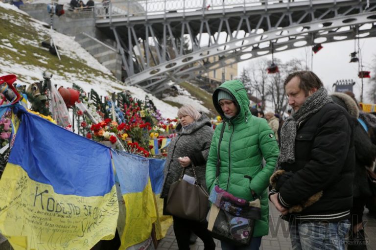 V Kyjeve si ľudia pripomínajú prvé výročie krvavých udalostí počas protestov proti vláde prezidenta Viktora Janukovyča, pri ktorých prišlo o život najmenej 105 ľudí. Na počesť obetí vyhlásili 20. február za štátny sviatok. Protesty vyústili do zosadenia Janukovyča a k jeho úteku do Ruska, Ukrajina, 18. Feb., 2015 Foto: SITA/AP