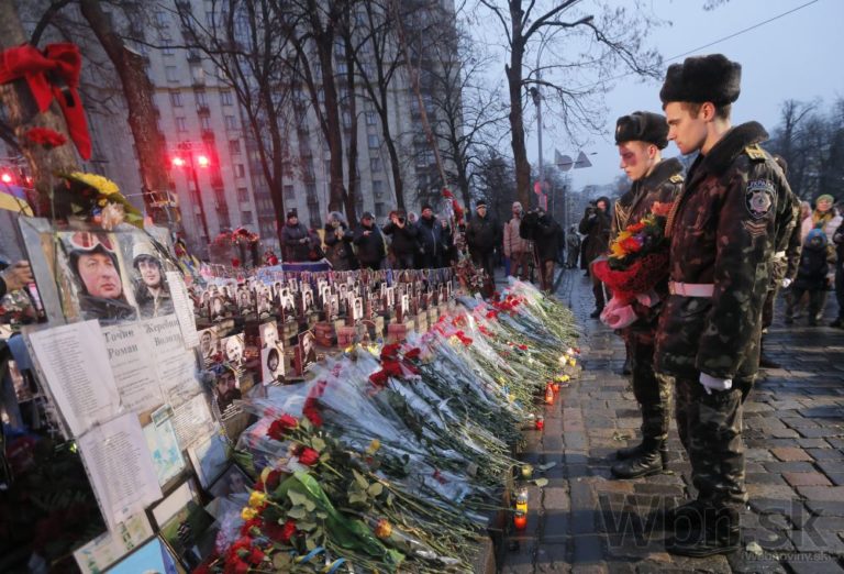 V Kyjeve si ľudia pripomínajú prvé výročie krvavých udalostí počas protestov proti vláde prezidenta Viktora Janukovyča, pri ktorých prišlo o život najmenej 105 ľudí. Na počesť obetí vyhlásili 20. február za štátny sviatok. Protesty vyústili do zosadenia Janukovyča a k jeho úteku do Ruska, Ukrajina, 20. Feb., 2015 Foto: SITA/AP