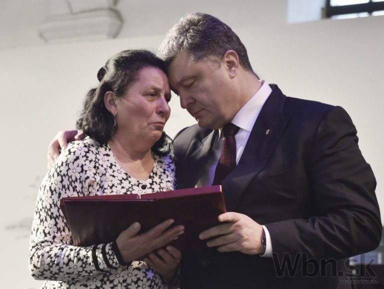 Ukrajinský prezident Petro Porošenko odovzdáva cenu Hrdina Ukrajiny pozostalým, ktorých príbuzní zahynuli pred rokom počas násilných demonštrácií. Kyjev si pripomína výročie krvavých udalostí počas protestov proti vláde prezidenta Viktora Janukovyča, pri ktorých prišlo o život najmenej 105 ľudí. Na počesť obetí vyhlásili 20. február za štátny sviatok. Protesty vyústili do zosadenia Janukovyča a k jeho úteku do Ruska, Ukrajina, 20. Feb., 2015 Foto: SITA/AP