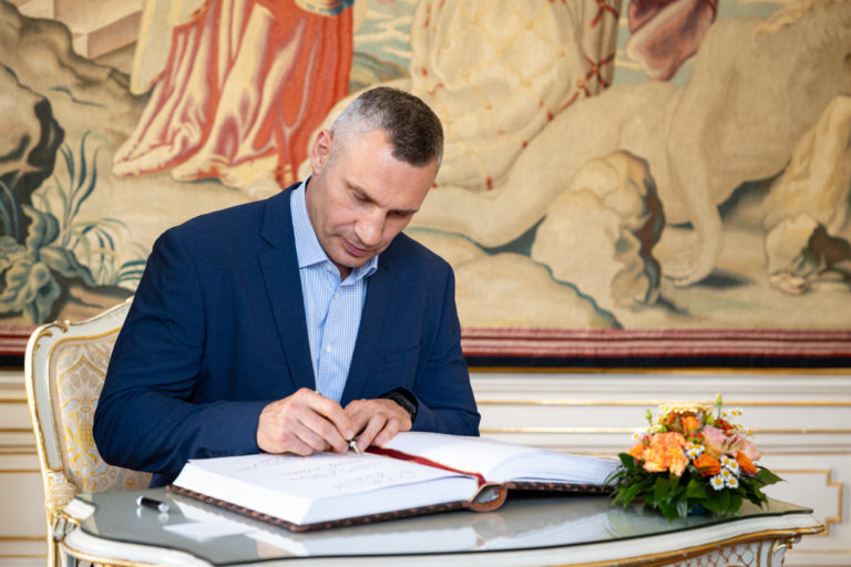 Starosta ukrajinského hlavného mesta Kyjev Vitalij Kličko počas stretnutia s primátorom Bratislavy v Primaciálnom paláci v rámci návštevy v Bratislave. Bratislava, 18. júl 2023. Foto: SITA/Jana Birošová