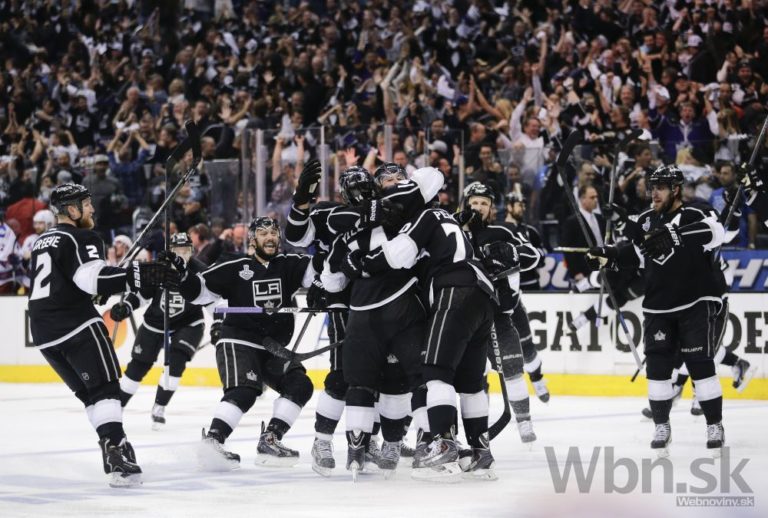 Hráči Los Angeles Kings oslavujú víťazstvo po góle v predĺžení. Foto: SITA/AP