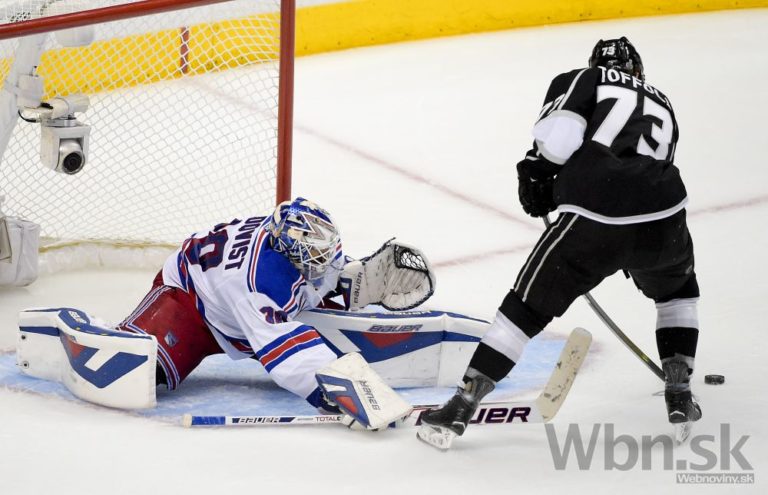 Brankár New York Rangers Henrik Lundqvist blokuje strelu centra Los Angeles Kings Tylera Toffoliho. Foto: SITA/AP