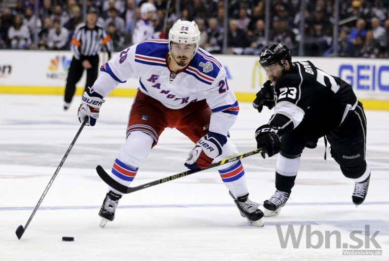 Útočník New York Rangers Mats Zuccarello, zľava, a center Los Angeles Kings Jeff Carter. Foto: SITA/AP