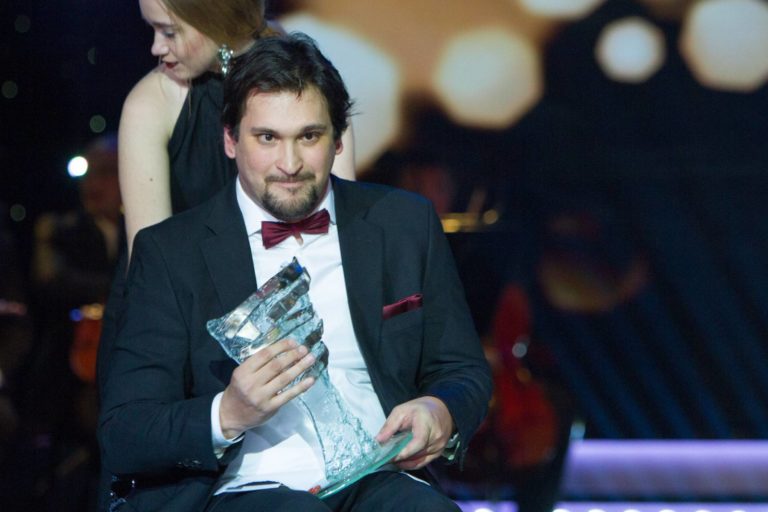 Laureát ceny Krištáľové krídlo v kategórii Divadlo a Audiovizuálne umenie, herec Tomáš Maštalír počas 21. ročníka oceňovania najvýznamnejších osobností Slovenska za rok 2017 Krištáľové krídlo. Bratislava, 21. január 2018. Foto: SITA/Ľudovít Vaniher