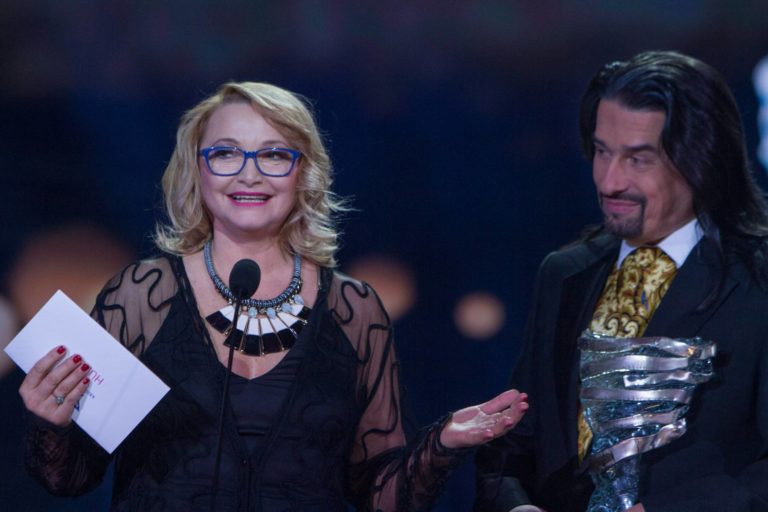 Laureátka ceny Krištáľové krídlo v kategórii Publicistika a Literatúra Dagmar Mozolová počas 21. ročníka oceňovania najvýznamnejších osobností Slovenska za rok 2017 Krištáľové krídlo. Bratislava, 21. január 2018. Foto: SITA/Ľudovít Vaniher