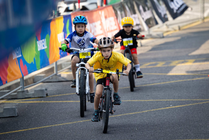 Atmosféra počas detských pretekov Kids Race v rámci tretieho ročníka pretekov L'Étape Slovakia de Tour de France. Bratislava, 19. august 2023. Foto: SITA/Jana Birošová