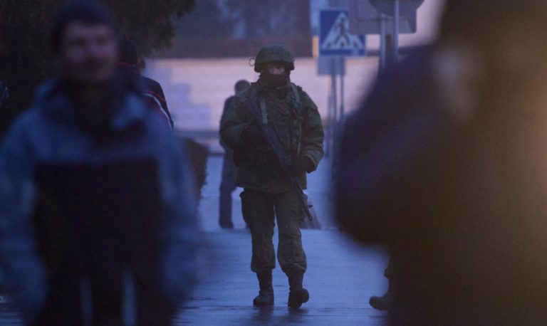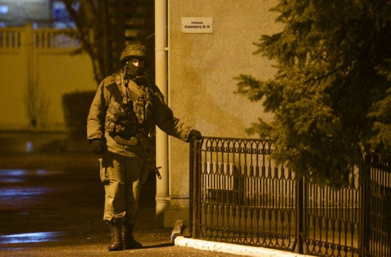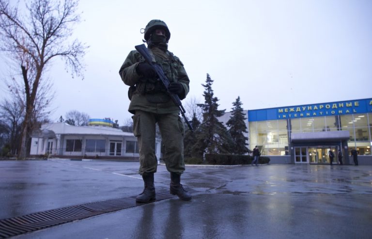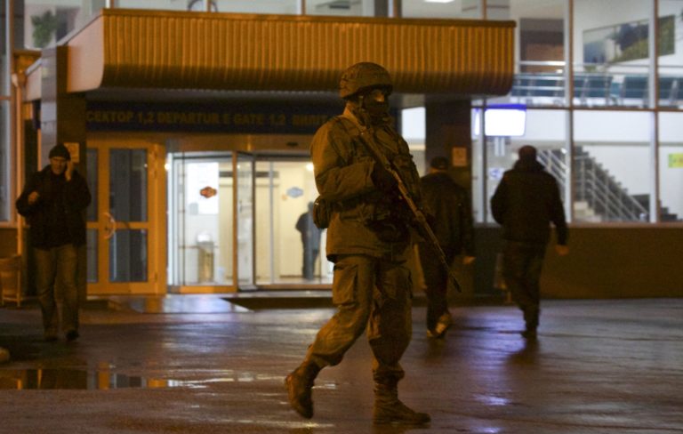 Ozbrojenci, ktorí vo štvrtok večer obsadili medzinárodné letisko v meste Simferopoľ na ukrajinskom Kryme, sa stiahli a letiskové haly už neokupujú. Zatiaľ nie je presne známe, ku komu títo ozbrojení muži patria. Foto: SITA/AP