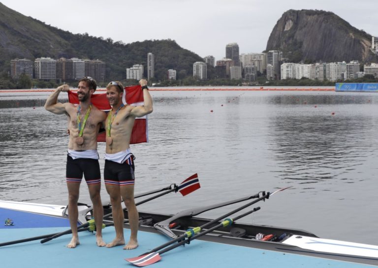 Nóri Kristoffer Brun a Are Strandli získali bronz v dvojskife ľahkých váh. Rio de Janeiro, 12. august 2016. Foto: SITA/AP