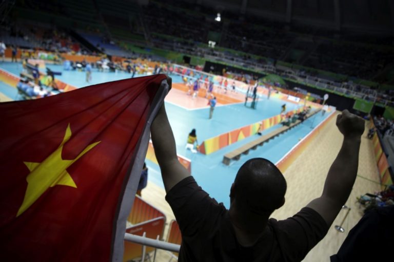 Fanúšikovia počas zápasu olympijského volejbalového turnaja medzi Čínou a Srbskom. Rio de Janeiro, 12. august 2016. Foto: SITA/AP
