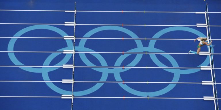 Sedembojárky počas behu na 100 m cez prekážky. Rio de Janeiro, 12. august 2016. Foto: SITA/AP
