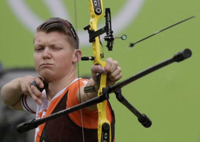 Holandský lukostrelec Sjef van den Berg počas eliminácie v súťaži jednotlivcov. Rio de Janeiro, 12. august 2016. Foto: SITA/AP