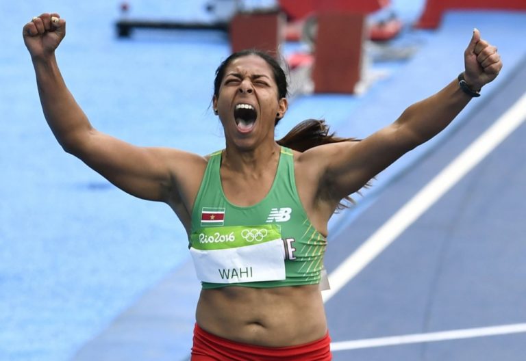 Sunayna Wahiová zo Surinam sa teší z triumfu v rozbehu na 100 m. Rio de Janeiro, 12. august 2016. Foto: SITA/AP