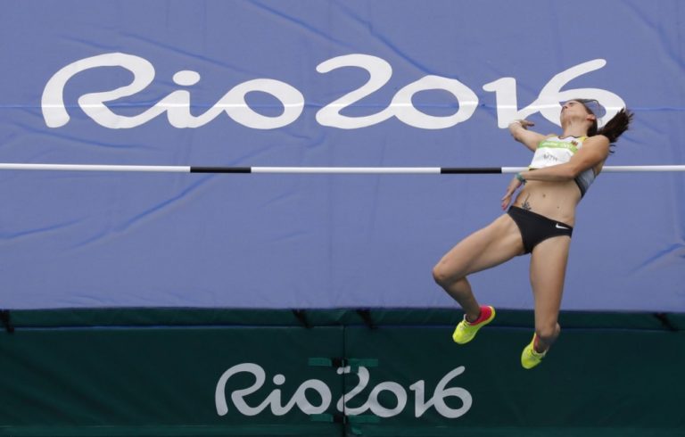 Nemecká reprezentantka Claudia Rathová a jej pokus v skoku do výšky v rámci súťaže sedembojárok. Rio de Janeiro, 12. august 2016. Foto: SITA/AP