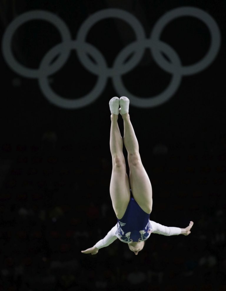 Američanka Nicole Ahsinger počas pretekov v skokoch na trampolíne. Rio de Janeiro, 12. august 2016. Foto: SITA/AP