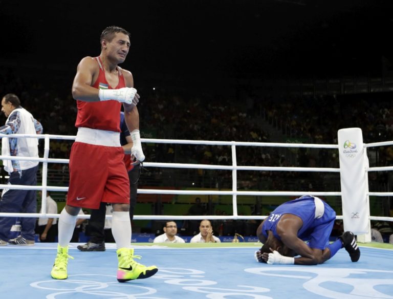 Slzy šťastiaFazliddina Gaibnazarova z Uzbekistanu (vľavo) po finálovom zápase, v ktorom zdolal Lorenza Sotomayora Collaza z Azerbajdžanu. Rio de Janeiro, 21. august 2016. Foto: SITA/AP