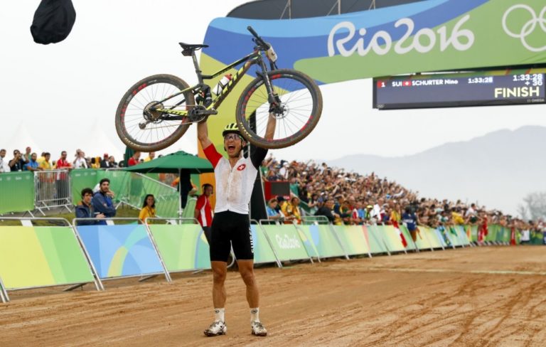 Víťaz pretekov cross country v horskej cyklista Nino Schurter. Rio de Janeiro, 21. august 2016. Foto: SITA/AP