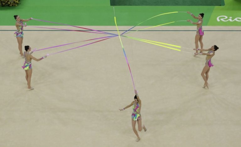 Španielske moderné gymnastky počas finále spoločných skladieb. Rio de Janeiro. 21. august 2016. Foto: SITA/AP