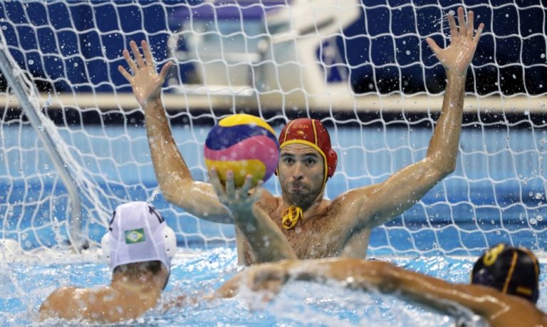Brazílčan Josip Vrlic sa snaží prekonať španielskeho brankára Inakiho Aguilara Vicenteho počas zápasu o siedme miesto. Rio de Janeiro, 20. august 2016. Foto: SITA/AP