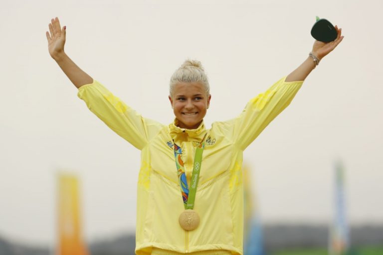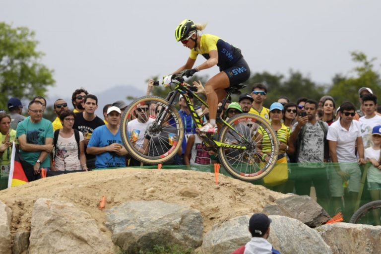 Švédska horská cyklistka Jenny Rissvedsová získala zlatú medailu v pretekoch cross country. Rio de Janeiro, 20. august 2016. Foto: SITA/AP
