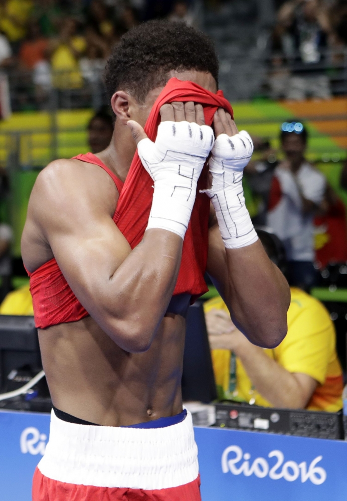 Smutný americký boxerista Shakur Stevenson po prehre vo finálovom zápase kategórie do 56 kg s Kubáncom Robeisym Ramírezom. Rio de Janeiro, 20. august 2016. Foto: SITA/AP