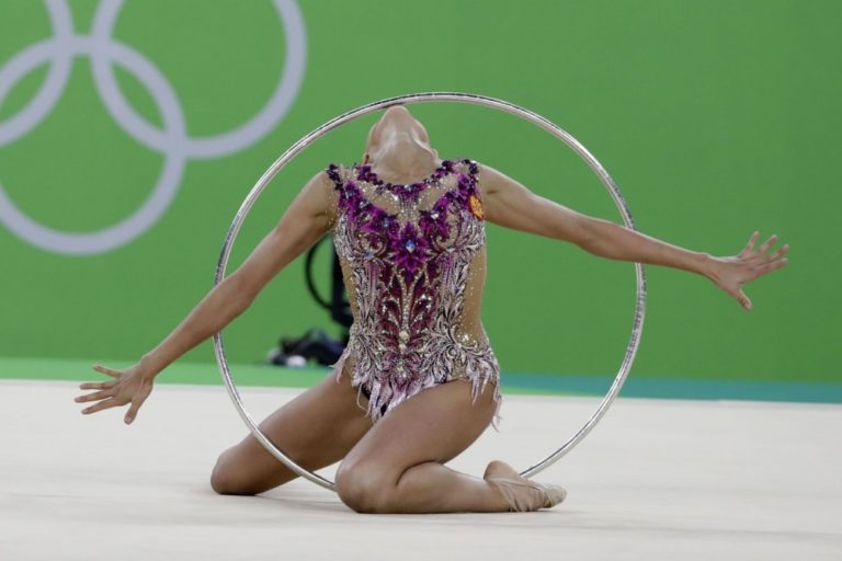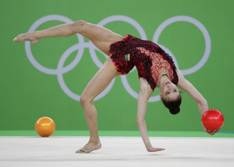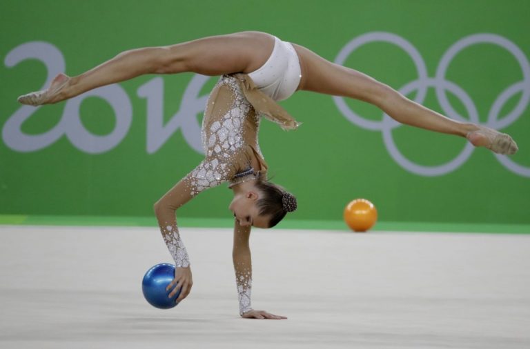 Bieloruská moderná gymnastka Katsiaryna Halkinová počas finále viacboja jednotlivkýň. Rio de Janeiro, 20. august 2016. Foto: SITA/AP