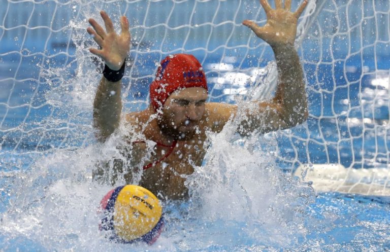 Maďarský vodnopólový brankár Viktór Nagy počas zápasu o piate miesto proti Grécku. Rio de Janeiro, 20. august 2016.vodno Foto: SITA/AP