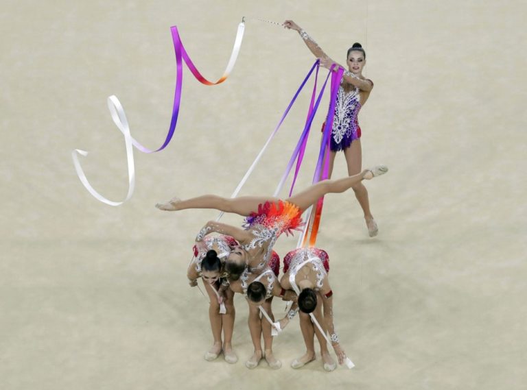 Španielske moderné gymnastky počas kvalifikácie spoločných skladieb. Rio de Janeiro, 20. august 2016. Foto: SITA/AP
