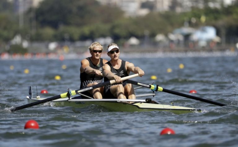 Zlatú medailu v dvojveslici bez kormidelníka získali Novozélanďania Eric Murray a Hamish Bond. Rio de Janeiro, 11. august 2016. Foto: SITA/AP