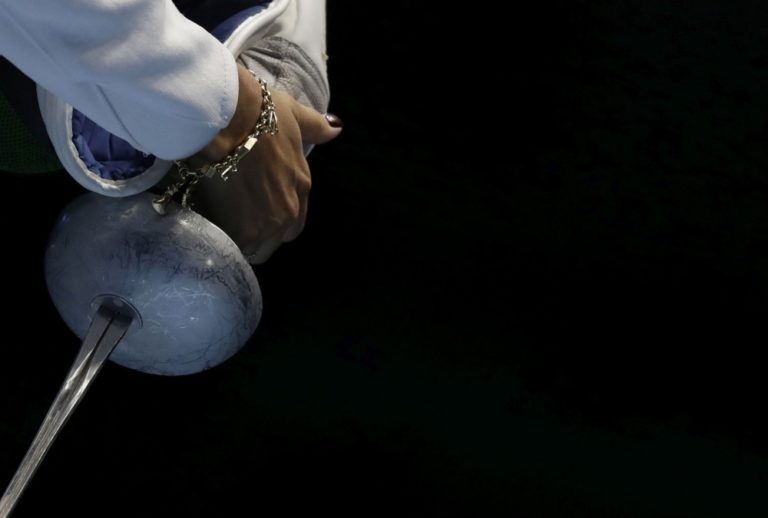 Brazílska reprezentantka Nathalie Moellhausenová počas súťaže kordu ženských družstiev. Rio de Janeiro, 11. august 2016. Foto: SITA/AP